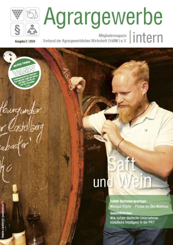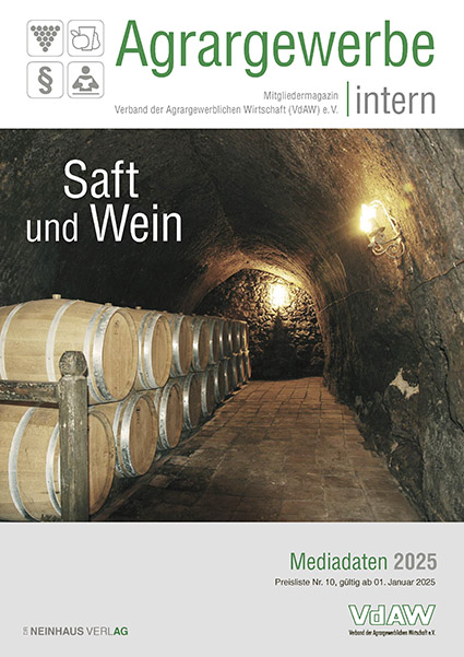 Die Zeitschrift „Agrargewerbe intern“ erscheint 4x jährlich mit den alternierenden Themen-Schwerpunkten „Landhandel & Mühlen“ (Nr. 1 und 3) bzw. „Saft & Wein“ (Nr. 2 und 4). Zurückliegende Ausgaben können von VdAW-Mitgliedern im PDF-Format beim Verlag kostenlos angefordert werden.