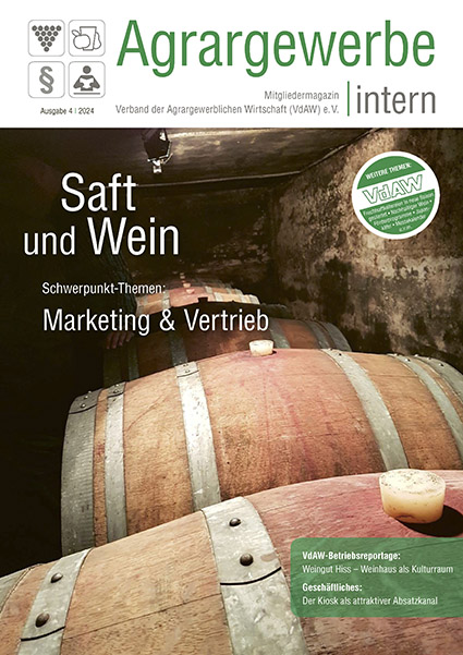 Mitgliedermagazin für Weinkellereien und Fruchtsafthersteller im VdAW e.V. Die Zeitschrift ist nicht im freien Abonnement erhältlich. An einer Mitgliedschaft interessierte Unternehmer erfahren unter www.vdaw.de mehr über den Verband und seine Leistungen.
